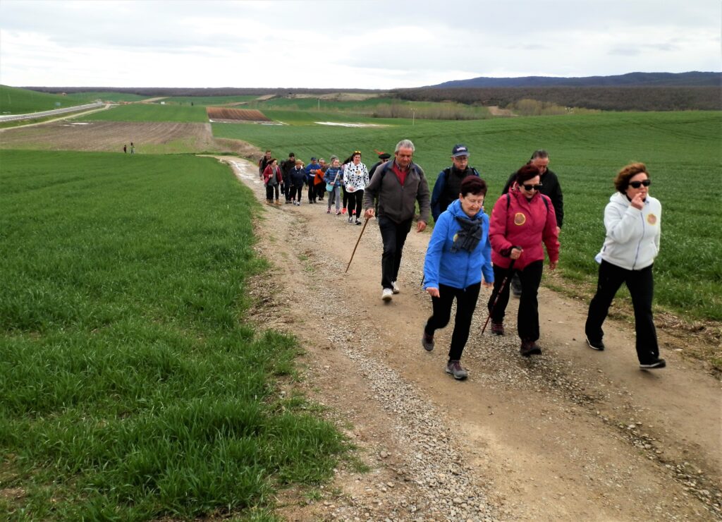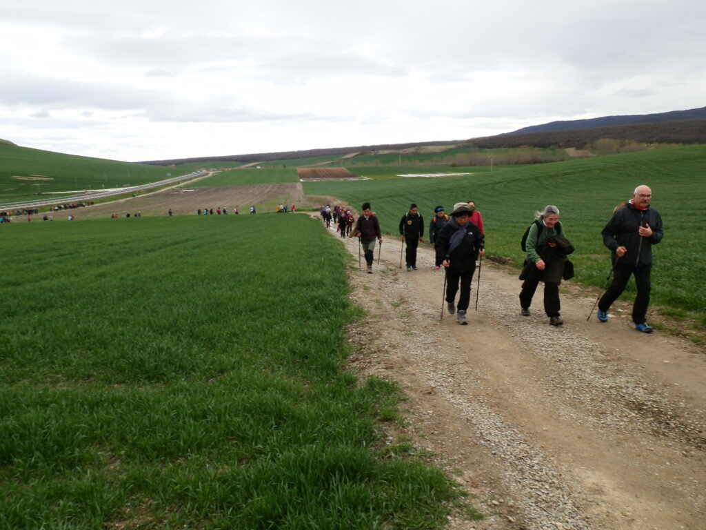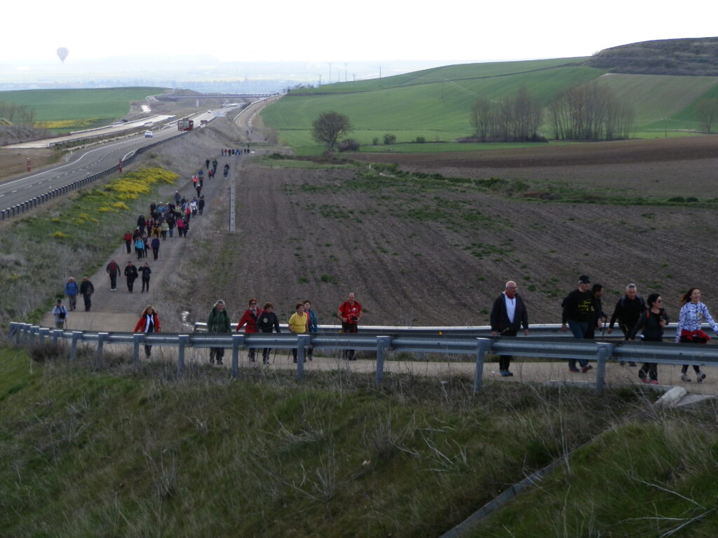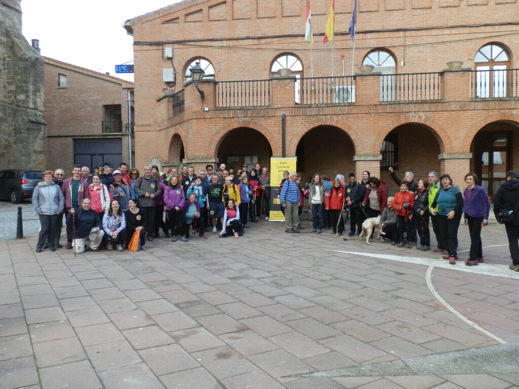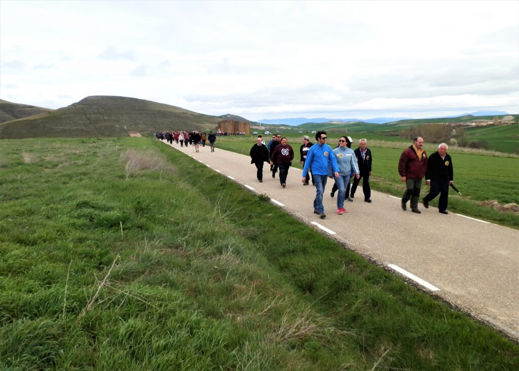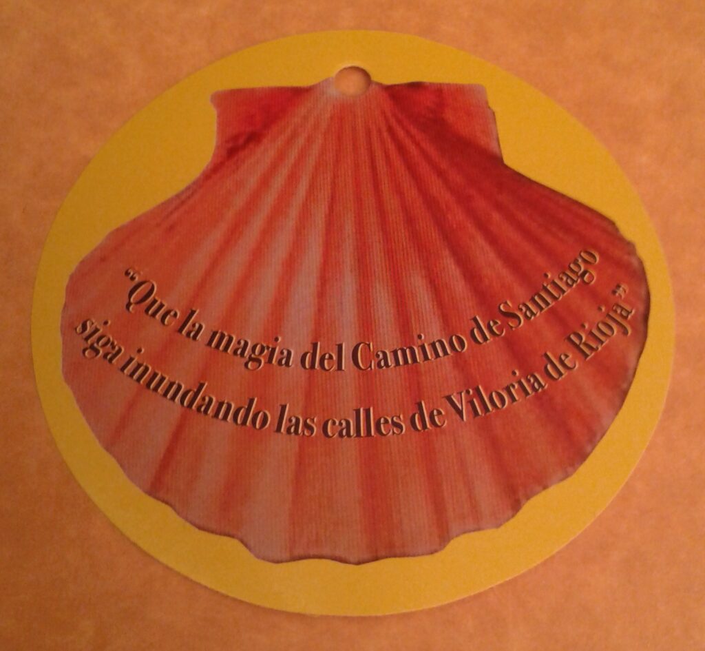 Al inicio de la marcha, en Santo Domingo, se repartió de forma gratuita una pegatina a todos los participantes y de la misma forma se repartía al pasar por los pueblos donde la gente se iba incorporando, todos la aceptaban con gusto y se la colocaban, aunque algunos “vilorianos” y “calceatenses” con una fingida sonrisa no quisieron aceptarla y otros, después de cogerla, con disimulo, la tiraron al suelo.