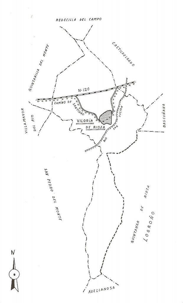 Limita al Norte (Cierzo) con Castildelgado, antes Villa de Pun, y Redecilla del Campo; al Este (Solano) con Bascuñana y Quintanar de Rioja; al Sur (Abrego) con San Pedro del Monte y Avellanosa, y al Oeste (Regañón) con Quintanilla del Monte y Villa Mayor del Rio.